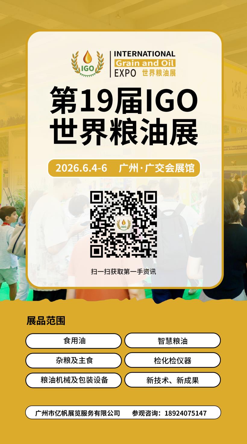 第19届IGO世界粮油展将于2026年6月4-6日在广州广交会展馆举行,IGO粮油展欢迎您!