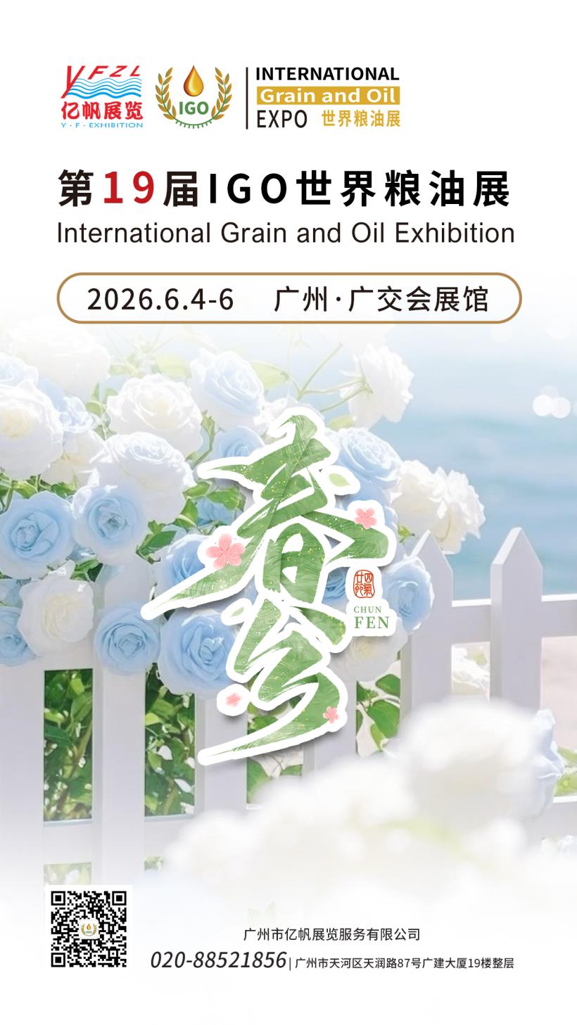 第19届IGO世界粮油展将于2026年6月4-6日在广州广交会展馆举行,诚挚邀请您来参展/参观!